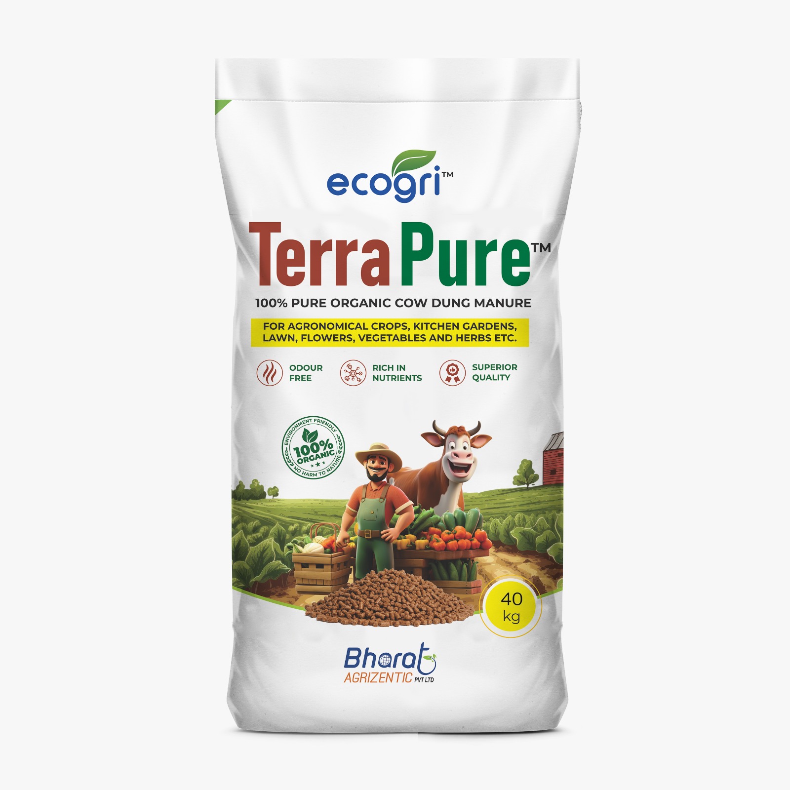 Made from purified cow dung and enriched with essential nutrients, TerraPure goes beyond feeding crops — it revitalizes the soil, restores nutrients, and promotes healthier, stronger plant growth.